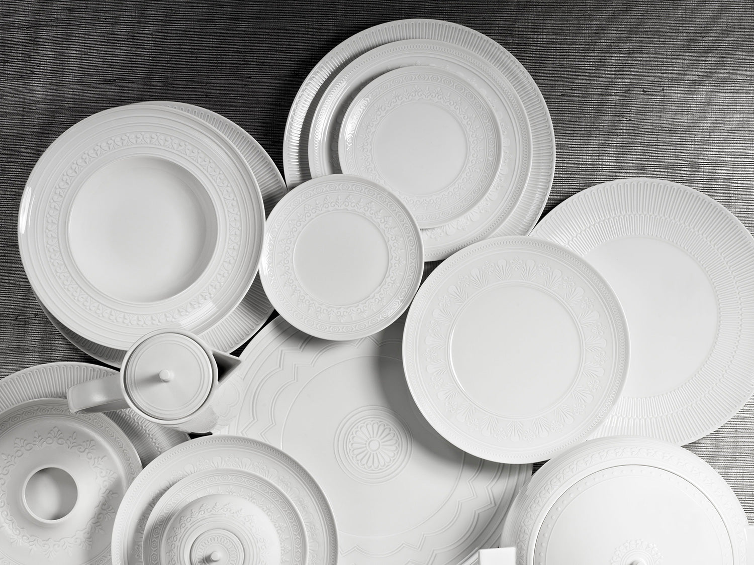 フランス人デザイナーSam Baronによる天井装飾をモチーフにした美しいデザインを、Vista Alegreの技術で繊細に表現した美しくエレガントなテーブルウエアです。