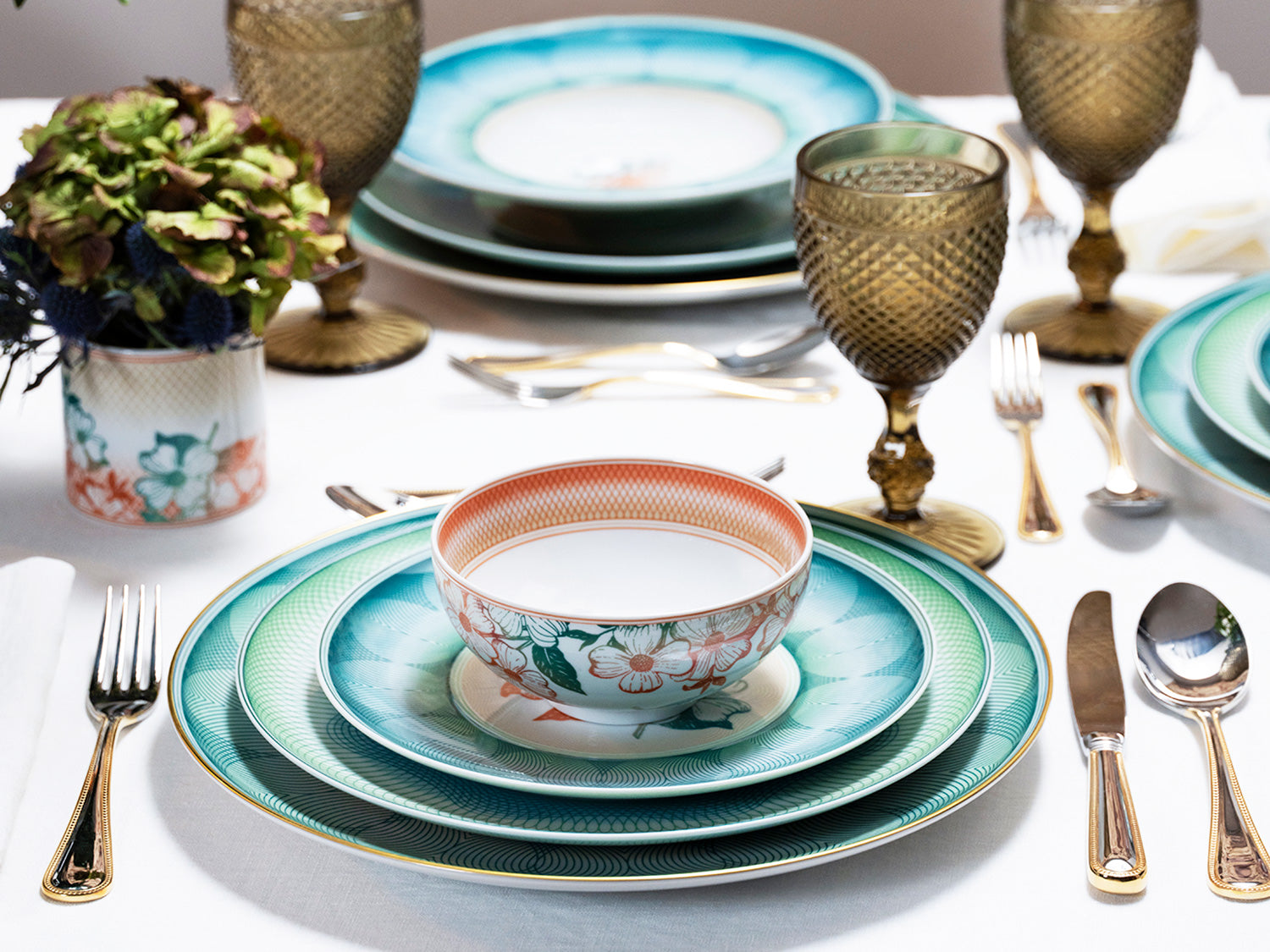 世界で活躍するブラジル人デザイナーBrunno JaharaによるTreasure。自然のモチーフ&幾何学模様の大胆な組み合わせと、美しい色彩が創り出す仄かな陰影、まさに宝物のようなテーブルウエアです。