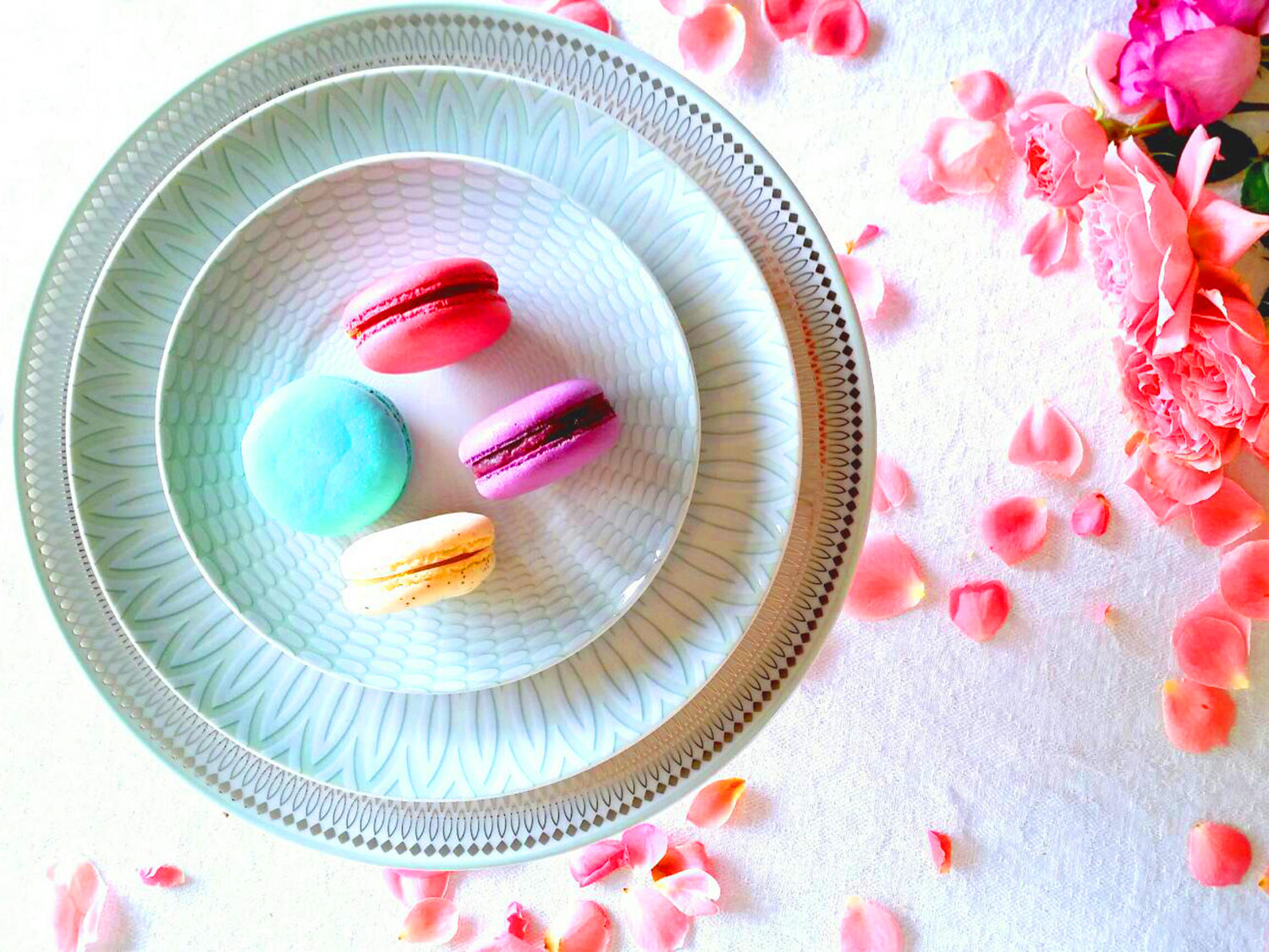繊細なレリーフ柄にヴェネチアを想わせるエメラルドグリーンを重ねた美しくエレガントなテーブルウエアです。