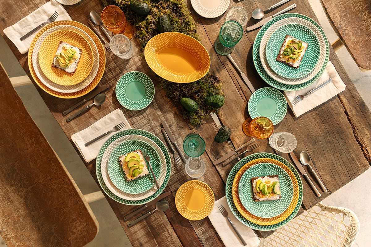 ルネッサンス時代から建築物の外装に用いられてきたダイヤモンドポイントからインスパイアされたBICOS。 深みのある色彩とシャープなレリーフがテーブルを鮮やかに彩ります。 VISTA ALEGREのBICOSグラス、BICOSポーセレンシリーズとのコーディネートもお楽しみください。