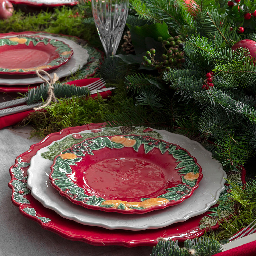 【Bordallo Pinheiro】 ポルトガル ボルダロピニェイロ クリスマスガーランド ディナープレート