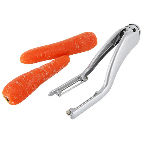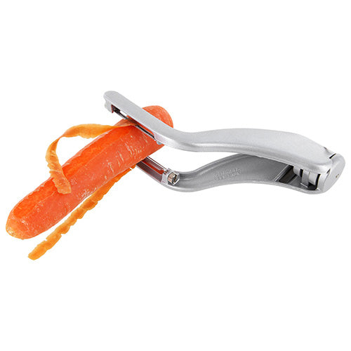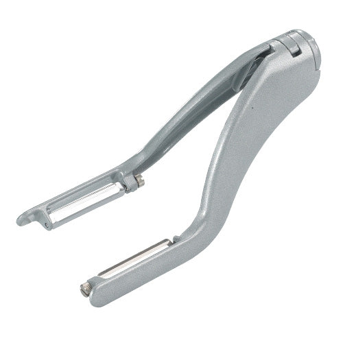 挟みながら両側を一度に剥けて、ささがきも素早くできます。アルミ製で軽くて丈夫、シンプルでスタイリッシュなデザインは、キッチンのインテリアにも。