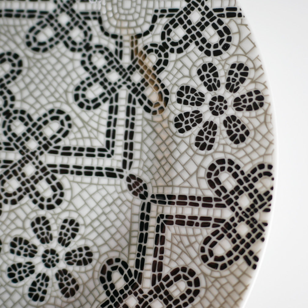 ポルトガルの石畳模様からインスピレーションを得た、著名なデザイナー、マノエラ・メディロスによるコレクション、カルサーダは、リスボンへの特別な敬意が込められた作品です。リスボンを彩るさまざまな街路を表現したモノトーンなデザインと、石畳の手触りを感じさせるリアルな表面処理が施された、エレガントなプレートです。