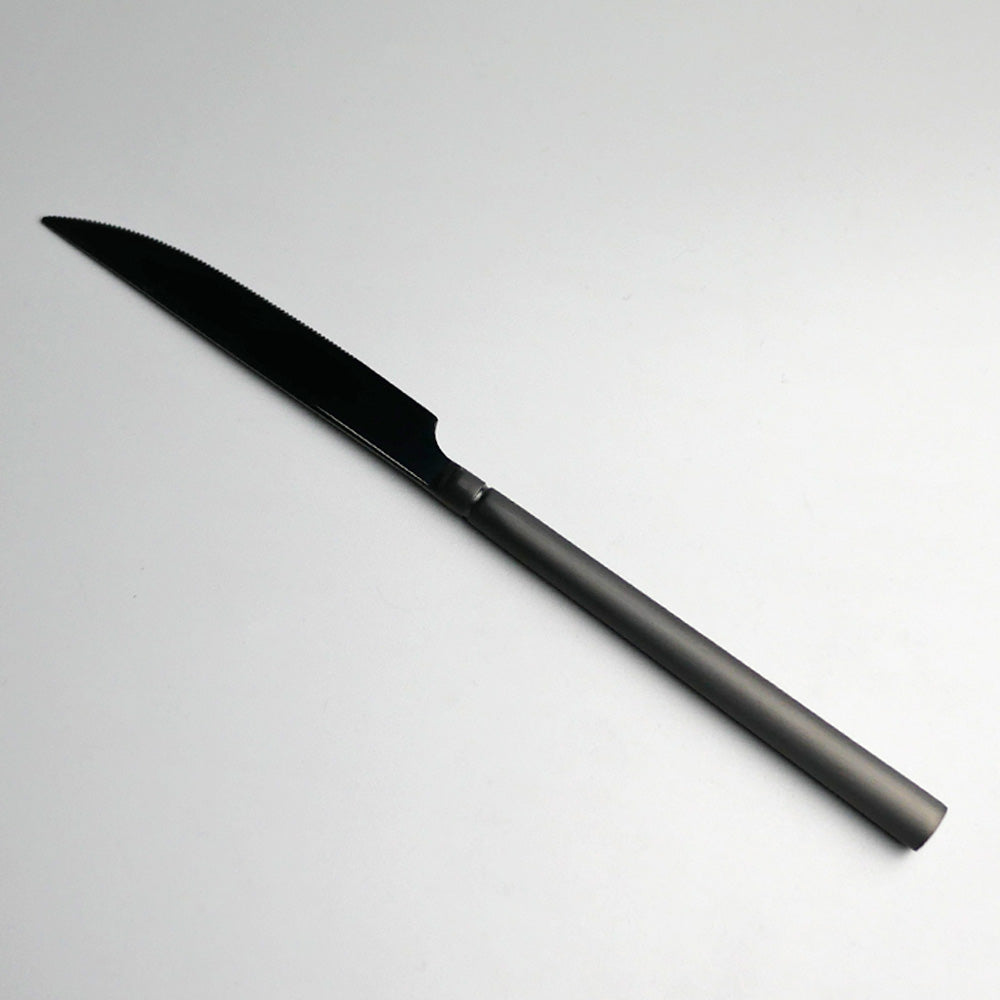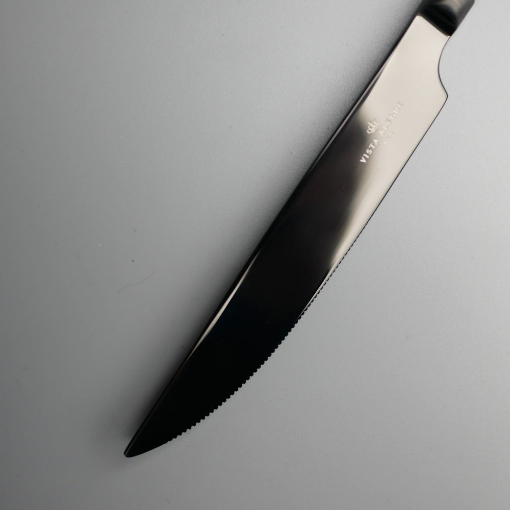 ナイフ部は光沢ブラック 持ち手はマットブラックが施された高級感あふれるカトラリーです。PVDコーティング加工により耐摩耗性 耐腐食性に優れています。