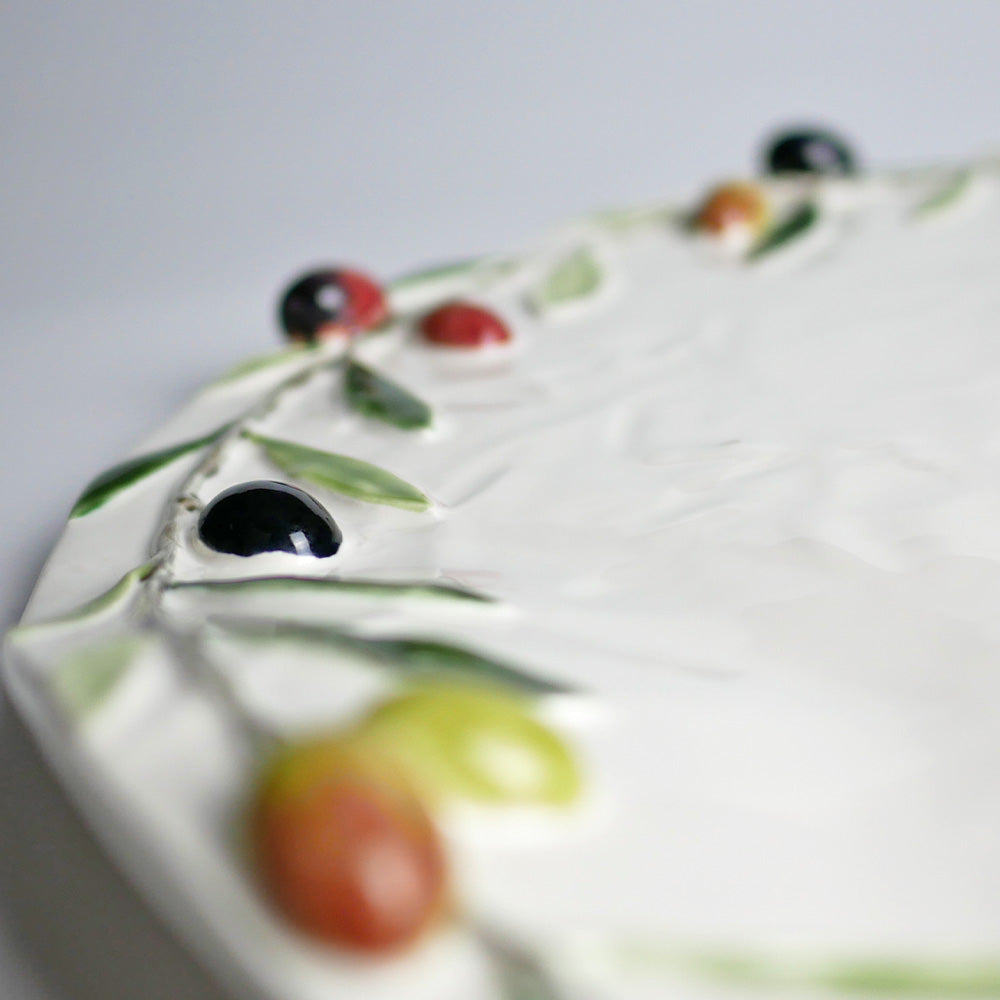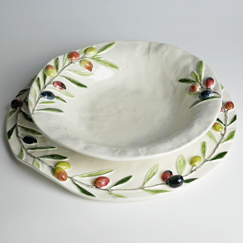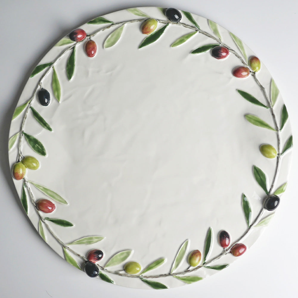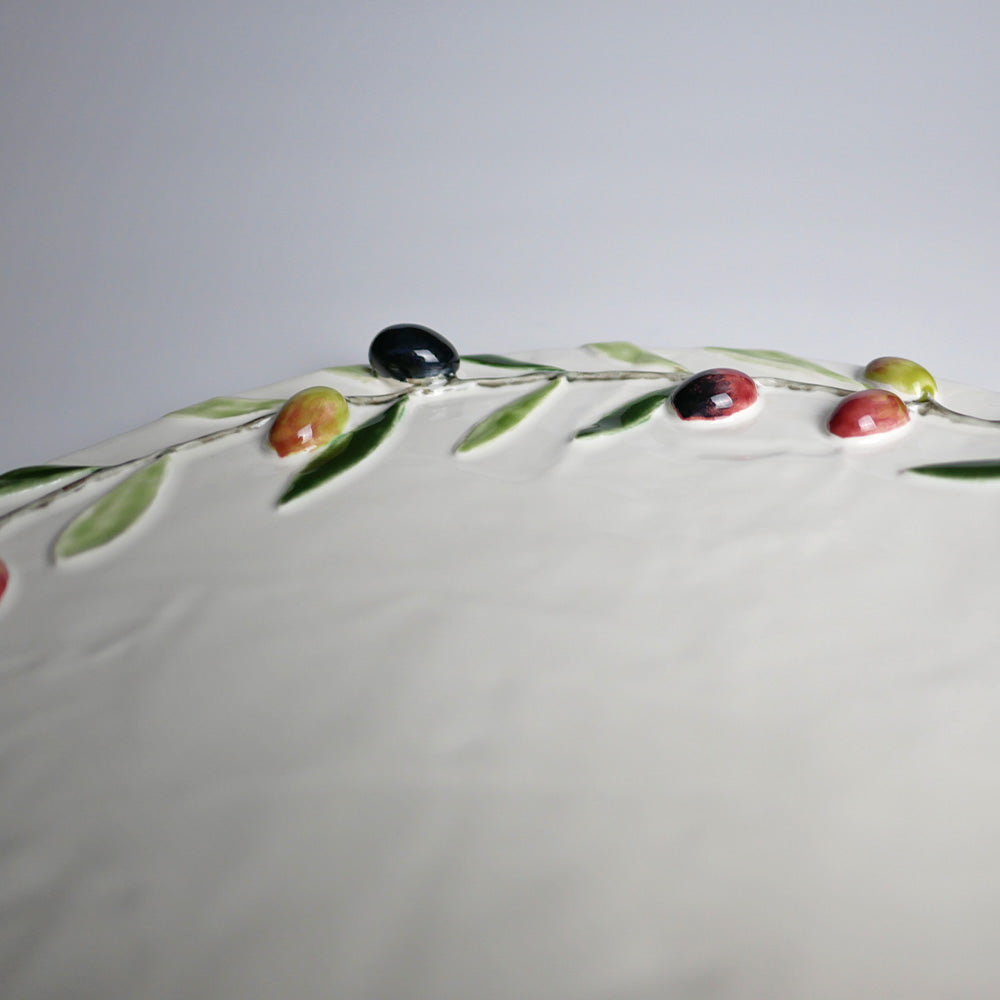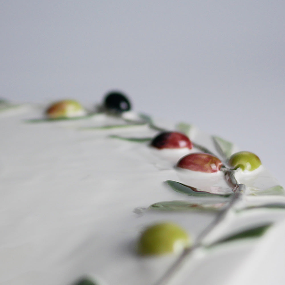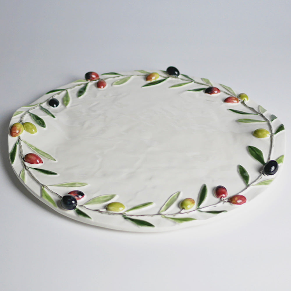 ハンドメイドでひとつひとつ丁寧に繊細に表現されたオリーブの実と枝葉。アートの様な美しいプレートたちがテーブルを彩ります。
