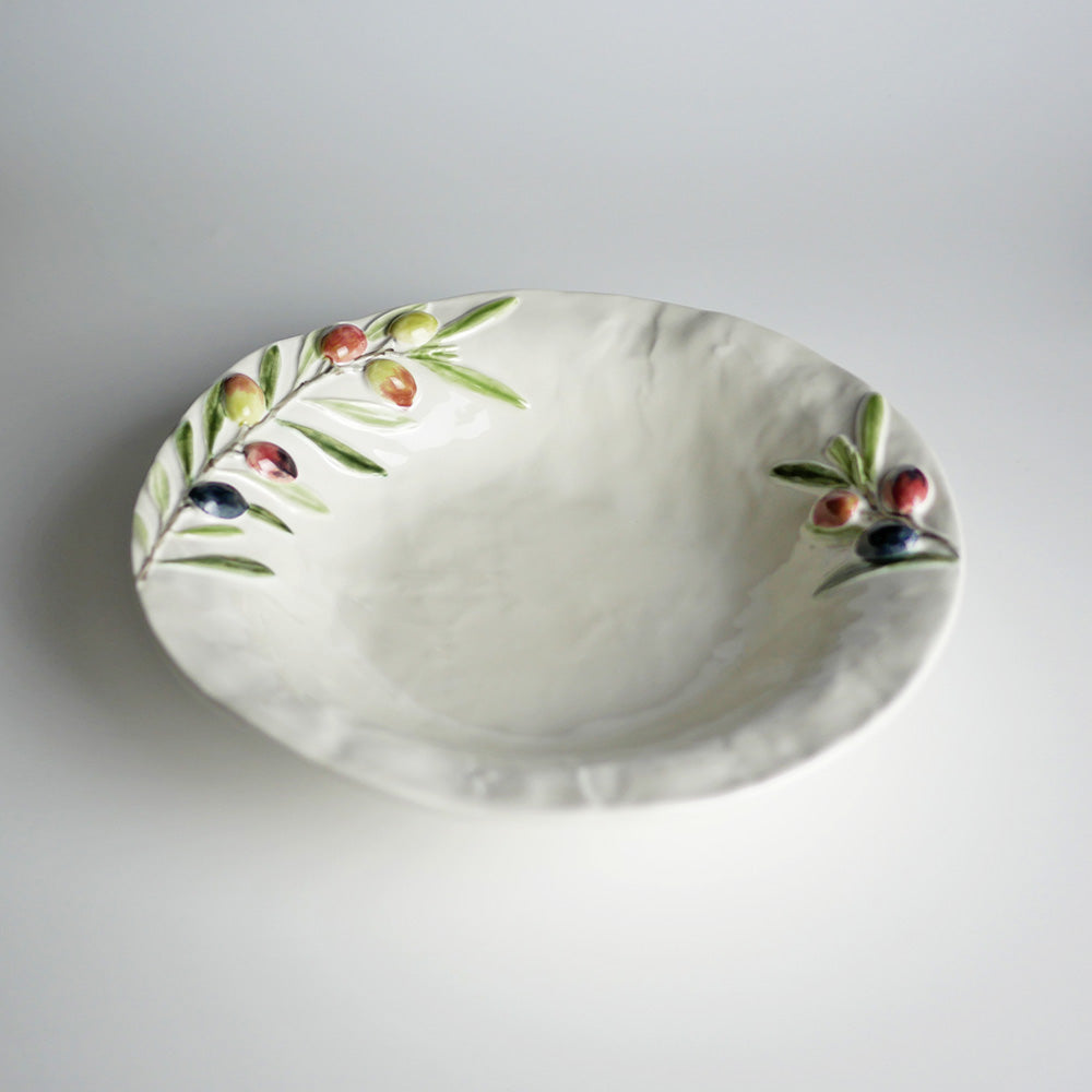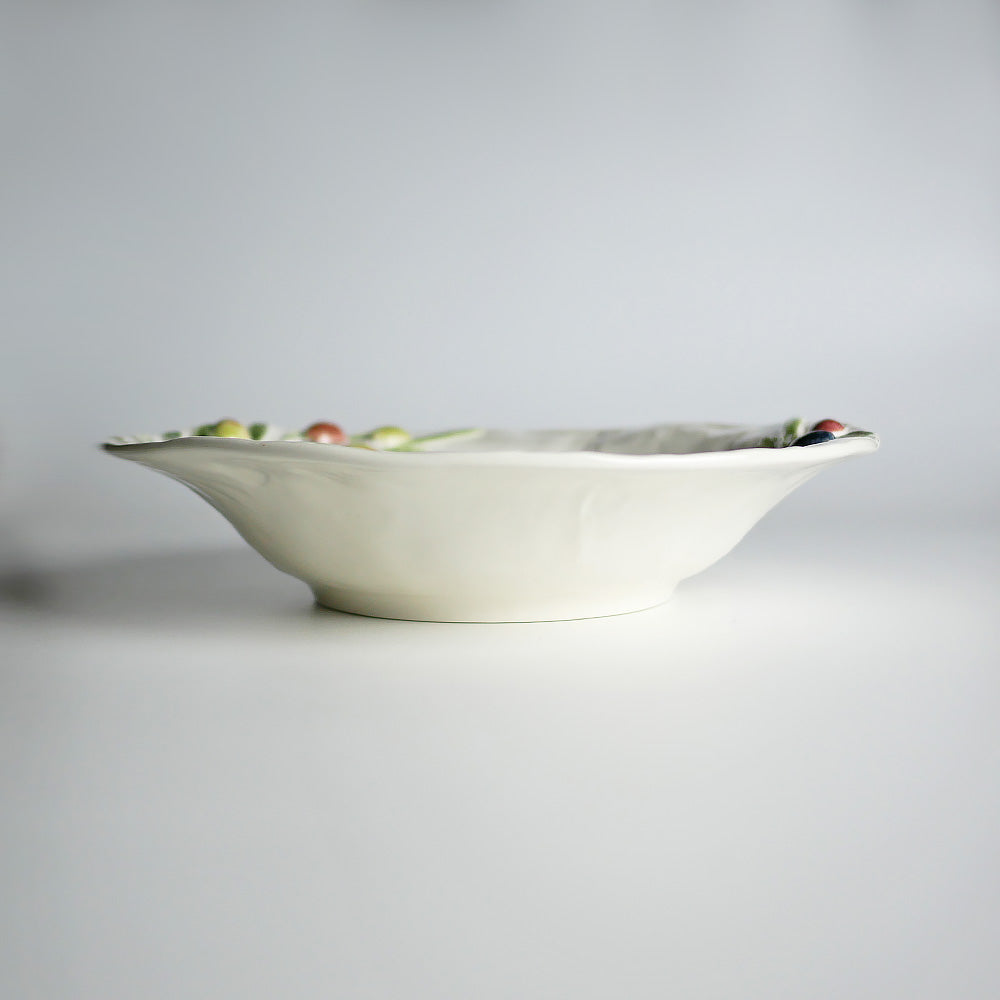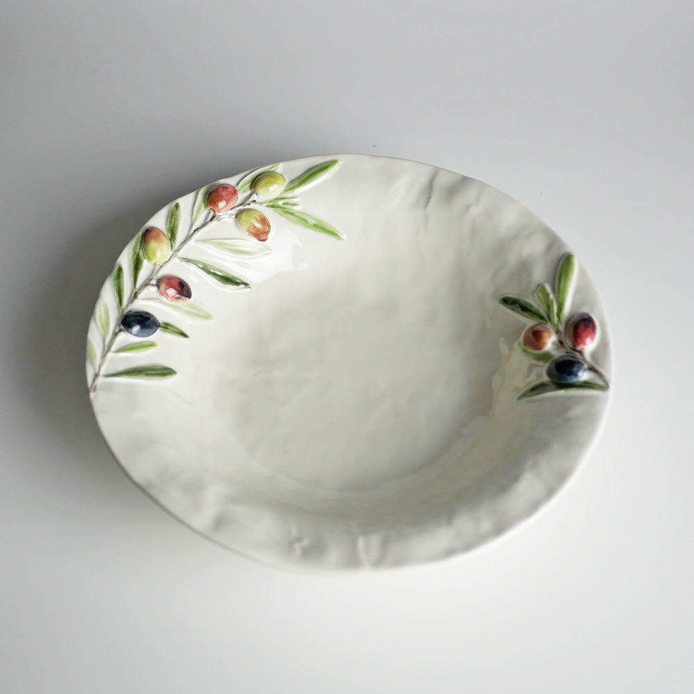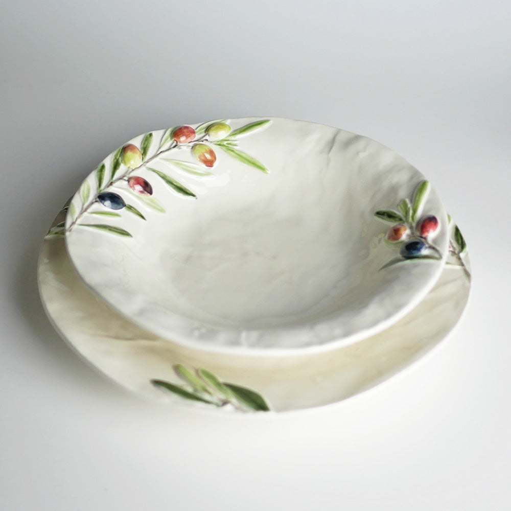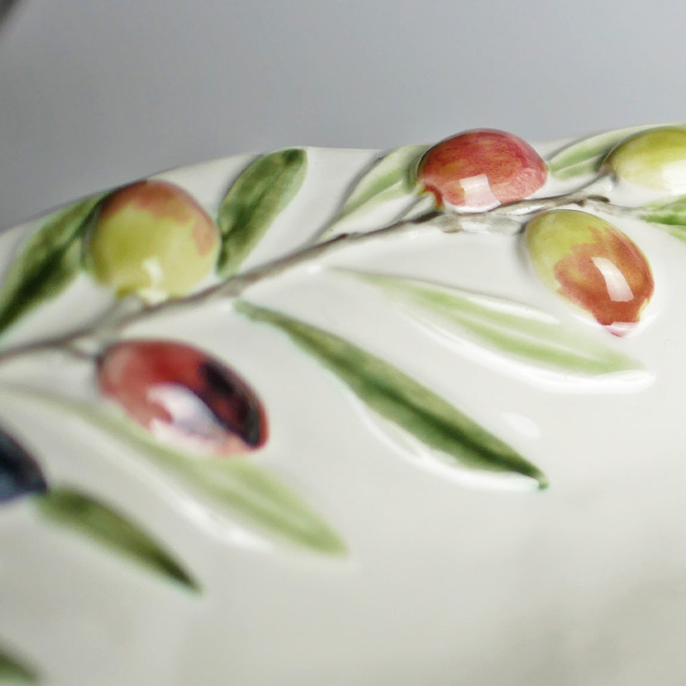 ハンドメイドでひとつひとつ丁寧に繊細に表現されたオリーブの実と枝葉。アートの様な美しいプレートたちがテーブルを彩ります。