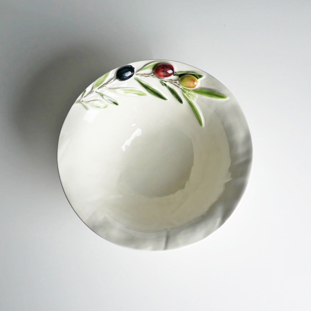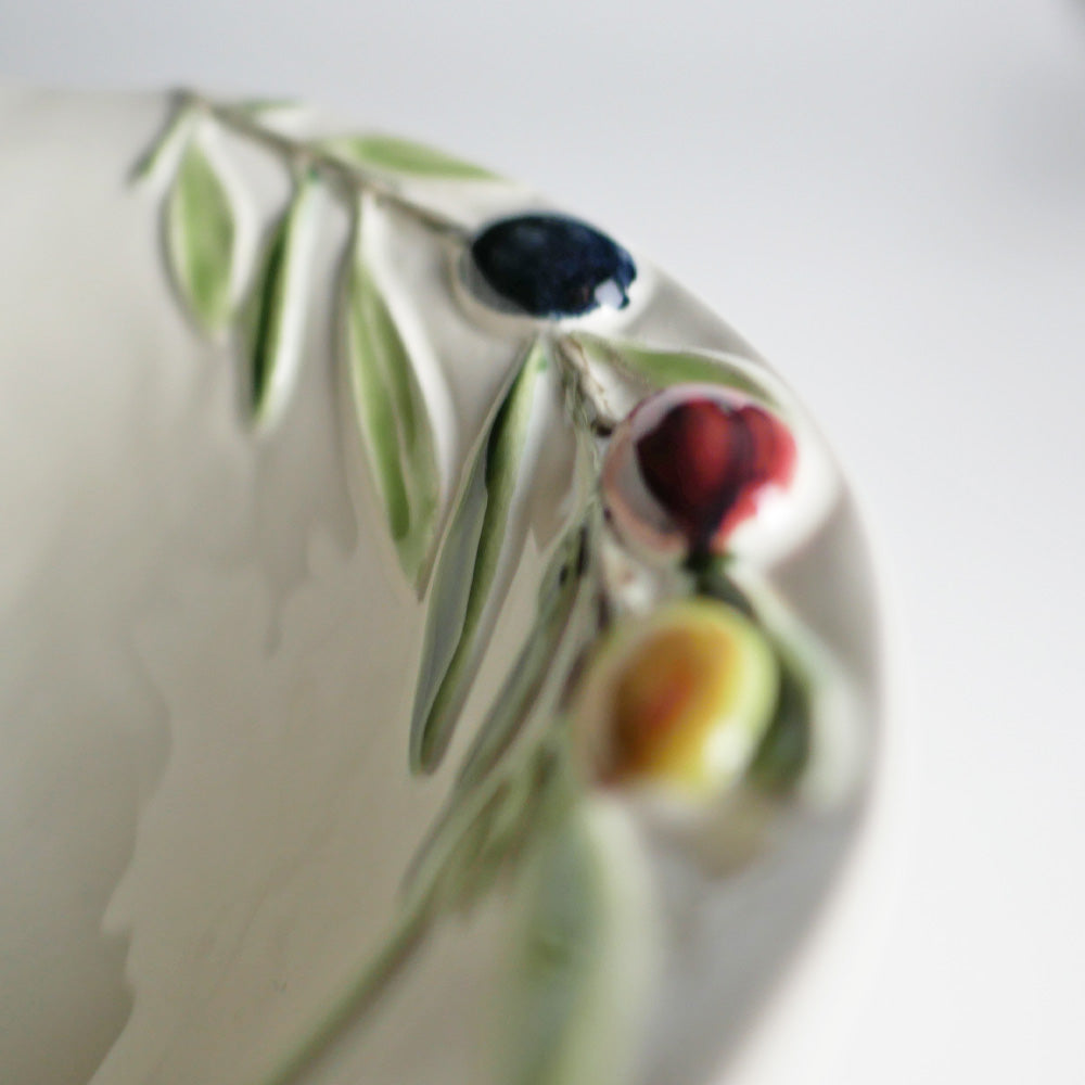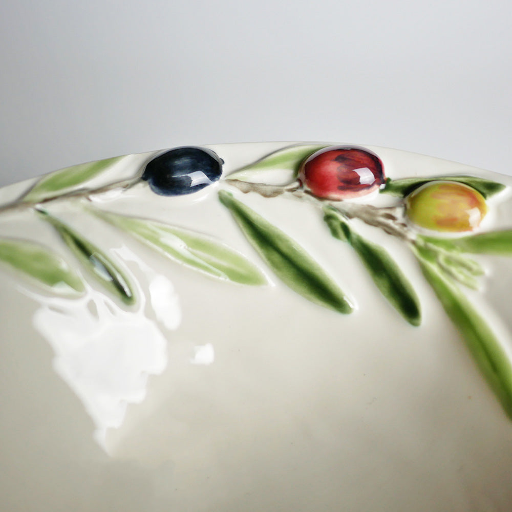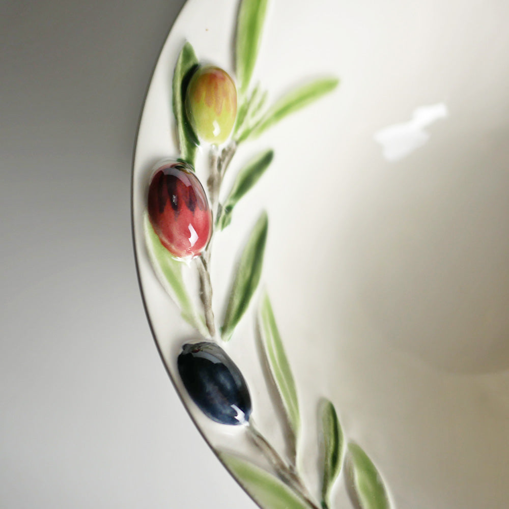 ハンドメイドでひとつひとつ丁寧に繊細に表現されたオリーブの実と枝葉。アートの様な美しいプレートたちがテーブルを彩ります。