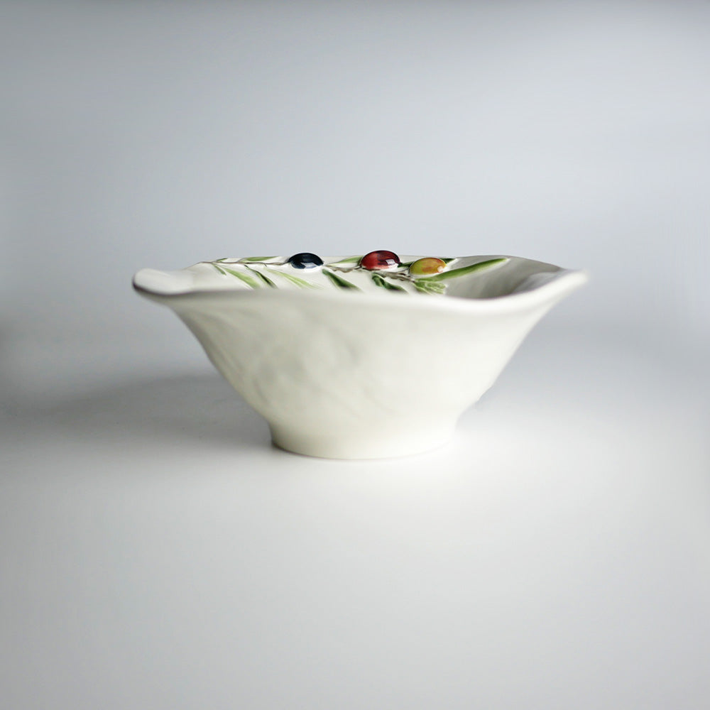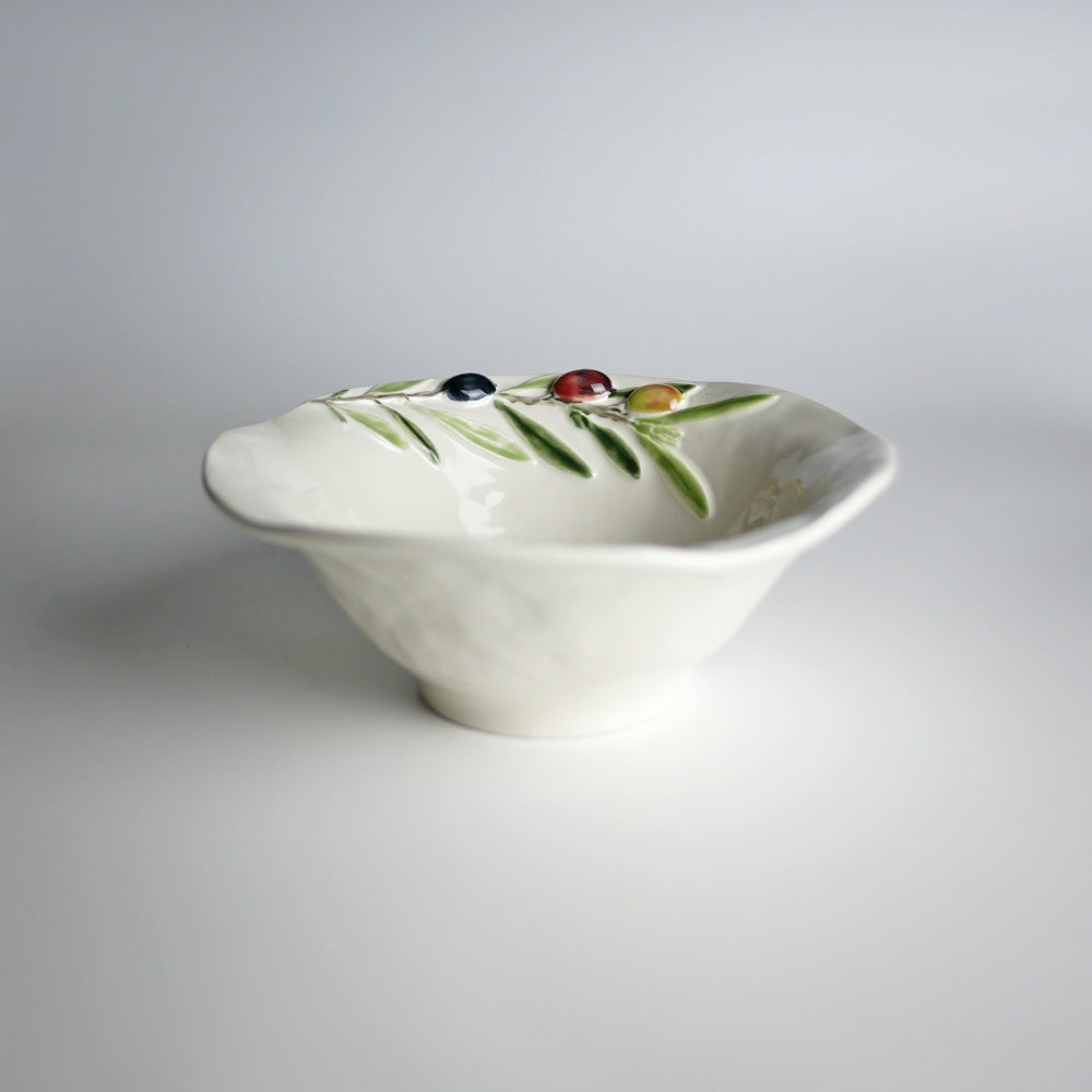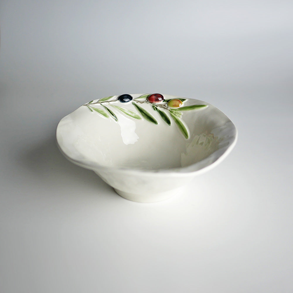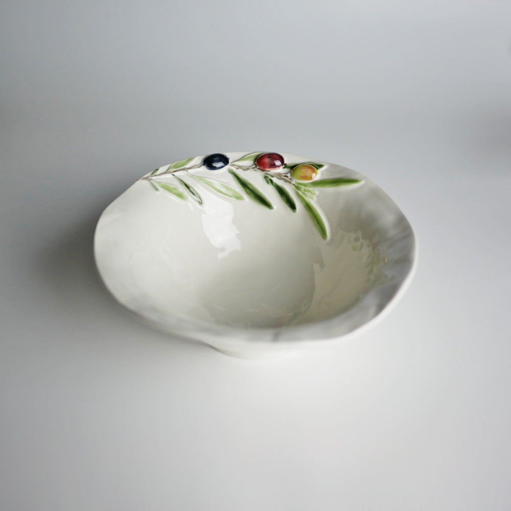 ハンドメイドでひとつひとつ丁寧に繊細に表現されたオリーブの実と枝葉。アートの様な美しいプレートたちがテーブルを彩ります。