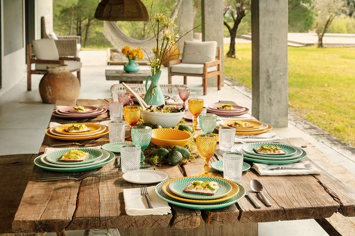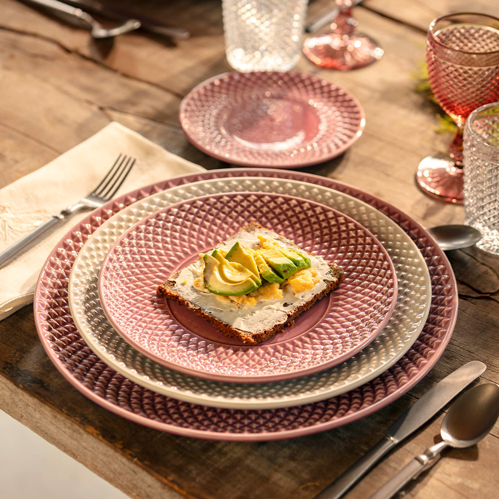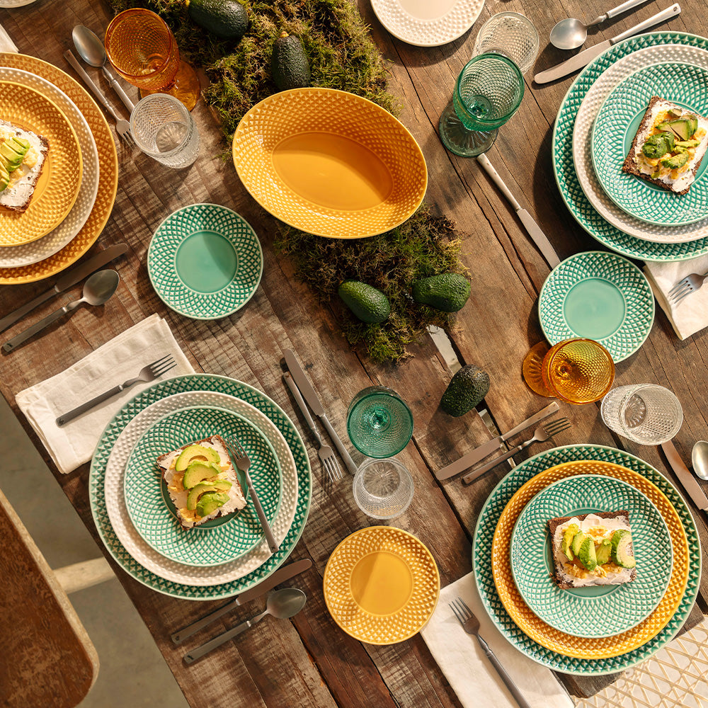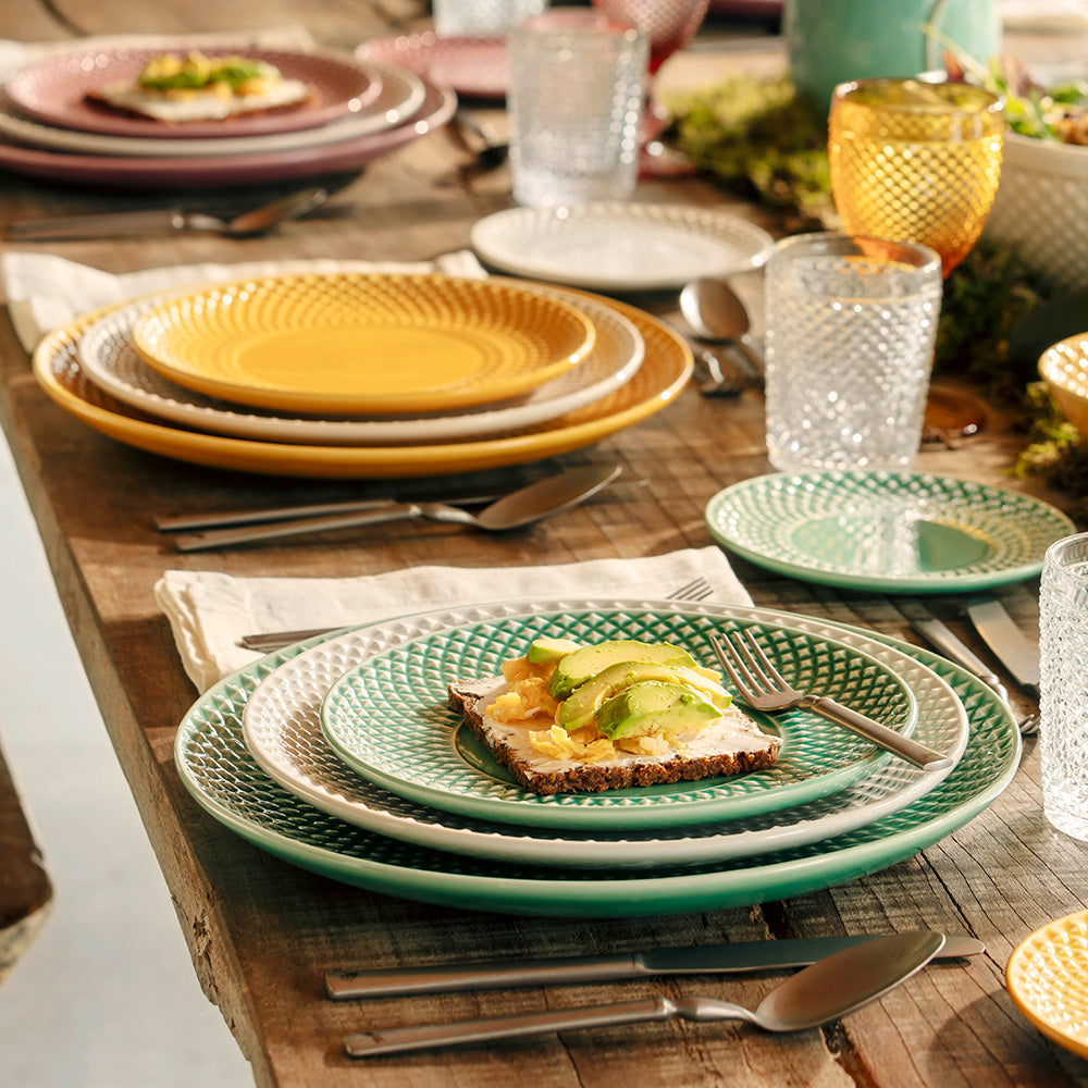 ルネッサンス時代から建築物の外装に用いられてきたダイヤモンドポイントからインスパイアされたBICOS。深みのある色彩とシャープなレリーフがテーブルを鮮やかに彩ります。VISTA ALEGREのBICOSグラス、BICOSポーセレンシリーズとのコーディネートもお楽しみください。