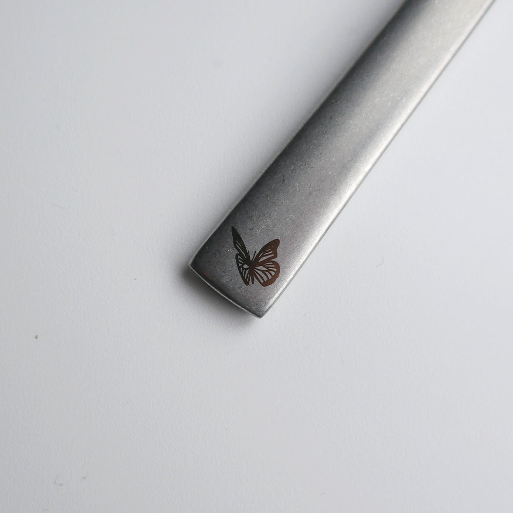 持ち手に刻まれた繊細な昆虫モチーフの装飾は、自然と共存する静かで調和のとれた田園風景へと私たちを誘います